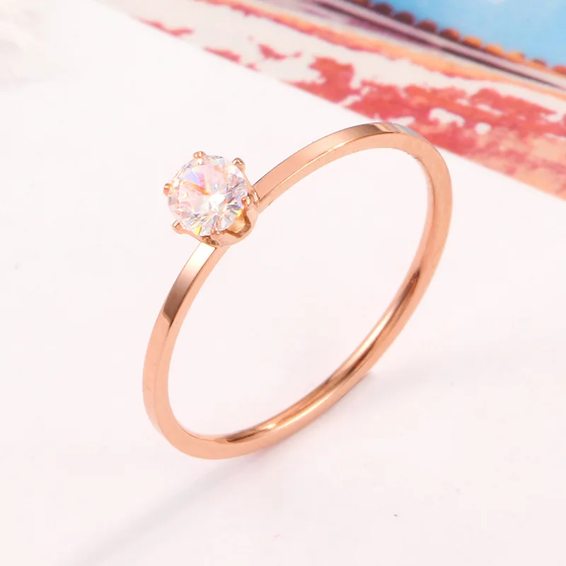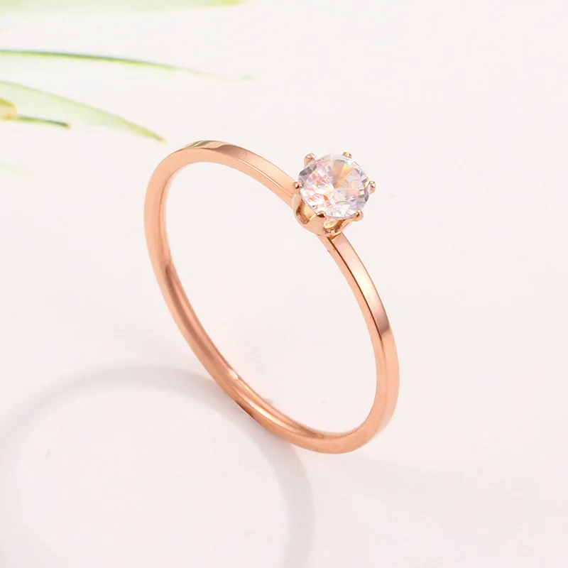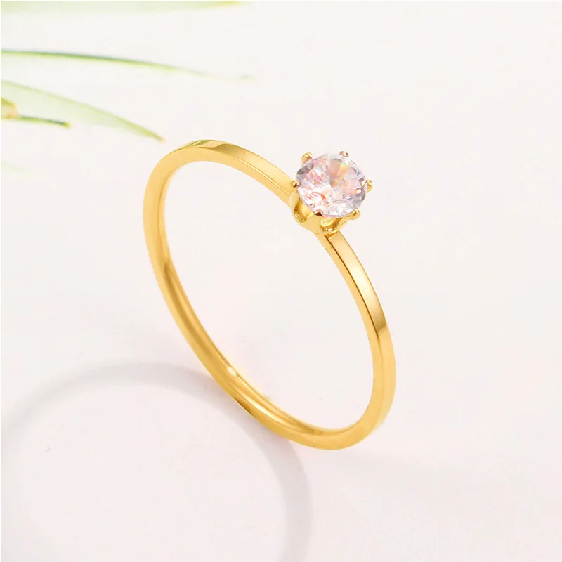Solitaire Ring Stainless Steel Korean Fashion Thin Pinky Rings with AAA+ Cubic Z